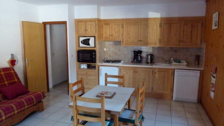 - Une grande cuisine – séjour équipé d’un convertible 2 personnes de 140 cm